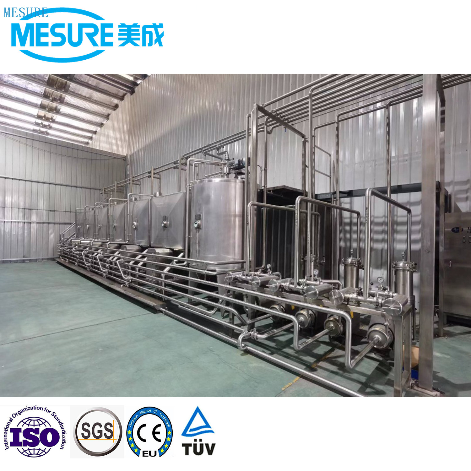 Jiangsu Mesure Machinery Co., Ltd, içme suyu, meyve suyu, karbonatlı alkolsüz içecek, süt içeceği ve alkol endüstrisinin tasarım, üretimi, kurulumu, devreye alınması ve eğitimi alan profesyonel bir şirkettir.